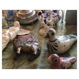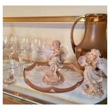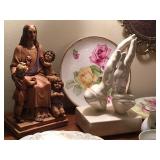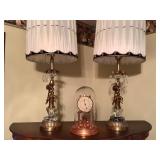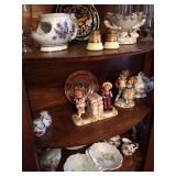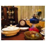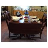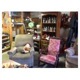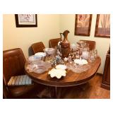 Gorgeous Antique Oak Curved Curio Cabinet Craddock Duncan Phyfe Dining Table & Chairs Antique Trunk Antique Rocking Chair Antique Clocks Including German Newer Linden German Clock Vintage Cherub Marble & Crystal Lamps Vintage Crystal