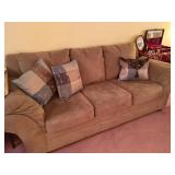 Beautiful Neutral Ultra Suede Sofa Two Recliners Like New Bassett Neutral Colors Sofa Bed Elegant Neutral Upholstery Chaise Lounge Chair Queen Size Brass Bed Vintage Mirror & Wall Decor LG Flat Panel TV TV Stands Computer Desks Dell Monitor