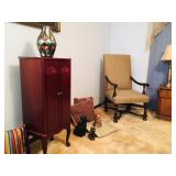 Beautiful Brass & Glass Bakers Rack Modern High Back Chairs Pennsylvania House End Tables Lane Side Tables / Nightstands MCM Bassett Long Walnut Dresser Matching Chest of Drawers Retro Pottery Lamps Francoma Pottery California Pottery Heywood Wakefield Table Retro Console Stereo Record Player Misc. Cassettes & DVD's Vintage 45's Albums