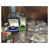 ADDENDUM: LARGE GOLD OMEGA STYLE NECKLACE AND PARTIAL LISTING: 82" X 98" RARE BEAUTIFUL ANTIQUE STAIN GLASS AND LEADED ARCH TOP WINDOW WITH DOVES AND URNS AND ROYAL RICH COLORS FROM OLD NORFOLK BAPTIST CHURCH & MANY OTHER SMALL AND LARGE STAINED GLASS WINDOWS. ANTIQUE GRANDFATHER CLOCK WITH HAND PAINTED FACE, OLD HANGING CABINET, DEMILUNE PAINTED CHEST, LARGE ORIENTAL FISH BOWL, PAIR CARVED BASE RED MARBLE TOP TABLES, BEAUTIFUL HAND CARVED ROSEWOOD VANITY WITH STOOL, BEAUTIFUL SOLID OAK HAND CARVED COLUMN FIRE MANTEL WITH BIRDS, 1860 LARGE ONE OF A KING OAK TALL HALL TREE WITH FANCY HOOK AND GALLERY WITH LARGE CENTER MIRROR, ANTIQUE RESTORED CARVED OAK BARBER CHAIR, 1948 SIGNED JAMES B. SMITH LARGE OIL ON CANVAS OF JESUS, KENNETH HARRIS WATERCOLORS, EARLY OIL ON CANVAS PAINTING OF COWS GRAZING, 1860 2 PIECE PLANTATION SECRETARY / BOOKCASE WITH 2 ARCHED INDIVIDUAL GLASS PANED DOORS, FRENCH CURIO, WALNUT BOX WITH SILVER MEDALLION, 400 +/- OLD RARE ANTIQUE STERLING SILVER & 800 SILVER PIECES INCLUDING FLATWARE, SERVING TRAYS, HOLLOWWARE AND RARE PIECES FROM THE OLD COUNTRY, OLD MILITARY DAGGERS AND KNIVES, ANTIQUE METAL TOY SOLDIERS, BOATS, CANNONS AND CALVARY, 50 SILVER AND COIN SILVER POCKET WATCHES, WRIST WATCHES, OLD GOLD LADIES JEWELRY, COSTUME JEWELRY, RARE ANTIQUE $20, $10, $5, $2 1/2 AMERICAN GOLD COIN SET, SILVER DOLLARS, FRAMED TURKEY FEATHERS, 1900-1909 PIRKENHAMMER COBALT AND GOLD CHINA INCLUDING LARGE SERVING PIECES, COVERED VEGETABLE DISHES, PLATTERS, PLATES AND MUCH MORE, OLD MAJOLICA PITCHERS & FIGURINES & PLATES & BOWLS ETC..., FENTON, CRANBERRY GLASSWARE, HOBNAIL VASES, LARGE LOT OF CHERRY DEPRESSION GLASS AND OTHER DEPRESSION GLASS, OLD COCA COLA CLOCK, HAND PAINTED PORCELAIN PORTRAIT TILE, VINTAGE SLOT MACHINE, OLD VINTAGE TOYS, ADVERTISING SIGNS, LONG FUR COAT & OTHER FUR PIECES, LARGE BONE HANDLE FISH SET PREVIEW MON & TUES DECEMBER 9 & 10 FROM 10 AM - 3 PM WWW.RANDYSAUCTIONGALLERY.COM VAAR 963 10% BUYERS PREMIUM FIRM# 340 RANDY FIEL 757-286-1976 MOBILE / 757-626-1919 GALLERY CATALOG AVAILABLE THURSDAY TO PRINT |