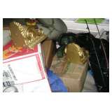 We just signed on for this one. Packed home with lots of great decorator pieces, beautiful furniture, high end clothing, some antiques and TONS more. this will be a true diggers delight. Look at the pics. All of the boxes you see are filled with stuff. we have no idea yet what is in them. Find out with us!!household items Some of the highlights include: --Great decorator pieces including statues, lamps, wall hangings, unique furniture and more --Beautiful bedromm set by Dixie featuring queen sized 4 poster bed, elegant Queen Anne highboy, dresser with mirror and 2 nightstands --Living room set with slate colored leather sofa, love seat & chair & glass topped iron coffee and end tables --Beautiful solid wood desk with 3 moveable shelving units and tons of storage --light fixtures including dining room chandielier,art deco hanging fixture, Tiffany style lamp --many single pieces of furniture & 3 different antique dressers --Large amount of womens clothing and shoes, many high end brands --small collecton of vintage figural liquor decanters --a lot of household items and small appliances --lots of glass, crystal, dinner service, etc.. --an absolutely packed garage and basement that is filled with boxes of who knos what!! We will add more pictures as we move along and uncover more things so check back