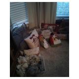 What a great time of year for this sale! We have many beautiful items for fall, Thanksgiving and Christmas. With this sale you can stock up on your serving pieces for your holiday dinners. Kitchen: We are selling Thanksgiving platters, cut glass serving pieces and many sizes and sizes of divided dishes and platters for your holiday table. There are several sets of dishes with platters and vegetable bowls of all sizes. We have a selection of the Tobasco crab dishes, some western themed dishes and platters with barbed wire design, loads of baking pans and different shaped muffin pans, pretty cake plates and stands. The pantry is full of small appliances and Tupperware, an air fryer, electric can opener, an electric griddle and more. There is a large selection of kitchen gadgets and utensils, all size knives and silverware. There’s corning ware, more cut glass items, glasses and more…, very nice lg frig. Living room: The tables are full of silveplate, (sorry didn’t get to polish before the sale), cut glass, unusual white dishes with fancy gold rims, pretty cups and saucers for your daughters afternoon tea party, 2 sets of china, set of 12 Shannon wine glasses, and more serving dishes. As you walk in you are greeted by santa checking his list and a decorated Christmas tree on wheels, a comfy chair and ottoman, and a large bookcase filled with books. There is also a trumpet and a Solid silver Yamaha 355 Flute and piano music. There are lamps of all sizes throughout the house and many great pictures. there are a couple of tv's. Den: is loaded with decorative items, some very nice accent chairs, all sizes of candle stands, crosses, furniture, pictures, florals, ranch items and décor, antiques, small tables, leather coffee table/foot stool, tons of décor of all kinds, unique collectibles, small wooden pieces, sofa and much more. There is a table of electronics and CD's, DVD’s, albums and Blue Rays, many of them Christian themed. Jewelry: Tons of jewelry, many sterling silver pieces, some Brighton and James Avery, some American Indian designed items,rings, bracelets, earrings, necklaces, and great sale items. If you not able to come to our last sale in Highland Village, be brought the remaining Fitz and Floyd, Mark Roberts, Radko and Alder Christmas items to this sale. One of our rooms is our "Christmas Wonderland" room. Lots of Christmas ornaments, beautiful stuffed animals of all sizes, toys, A huge Christmas tree on wheels, radko, mark Roberts, fitz and Floyd, Alder, and holiday décor of all kinds. There’s a table full of toys, games and puzzles. Office: offers lots of Ranch décor, a desk, office chair, wooden file cabinet, desk lamps, printer, table lamps, office supplies, great pictures and artwork, desk items, cowboy bust, bull horns, storage items, and more, tons of religious books and CD's. In the closet are beautiful table linens, cloth napkins, kitchen towels, dining room linens, napkin rings and great items to set a beautiful holiday table for your guests. Master Bedroomand bath:This room offers a beautiful hand carved King size western bed, wood and metal queen headboard and footboard, large TV, metal and wood decorative stand, 3 sided fold mirror, side table, lamps, tons of linens such as comforter sets with matching bedding and pillows and pillow and pillows, ranch décor, chest of drawers, great metal artwork, and furniture. There is a selection of towels, hair dryers, curling irons and bathroom accessories, handbags and leather belts Closet: One side is full of Great ladies clothing, many ST John items, jackets and skirts, shoes, scarves and handbags. The other side is all men’s clothing, nice western boots and hats. Laundry room: washer, dryer, sewing and floral supplies, vases, candles and some christmas. Double garage: is full of overflow – tables of décor and crosses, cut glass, picture frames, bar stools, single bed and chest of drawers, antique pump organ, wrapping station, chairs, décor, ladies golf clubs and tools. There is a tent that attaches to back of auto, and lots of surprises. Outside: under cover- mower, wheel barrel, edger, metal décor, chimenea, selection of garland and lights, small tables, pots and tall metal Christmas tree and more. |