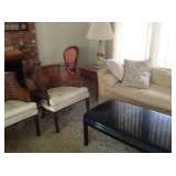 | Antique dining table with drop leaves, also an antique table with 2 extensions, Antique dressers, small tables, art, tools, antique china by Havilland, Also Limoges from France, some Wedgewood china, Quilts, many Hitchcock chairs with cain seats and stencil-decorated, chest of drawers with side extensions, mirror and more FURNITURE: Many chairs, some two alike, wood small accent chairs, brown leather sofa, beige mid-century sofa and tables, butcher block table, queen bed and twin bed, wood screen, night chests, 2 desks, black end and coffee table in a high gloss finish, oak end table and 3 TV's, child's table and chairs, toy organizer COLLECTABLES: Camera's from Keystone, Kodak, Canon, Koma lens, Havilland china (2 sets), Wedgewood china pieces, silver, old books, Feather weight Singer Sewing machine (great for quilting), Vintage tools, sewing items, art, silver, brass, lamps, old baskets, old keys, JEWELRY APPLIANCES: Refrigerator by GE with top freezer, Magic Chef washing machine, small appliances OUTSIDE: Garage full of tools, power tools, vintage tools, 2 bikes, ladders, outdoor chairs, plants and pots, LOOK FOR THE YELLOW SIGNS PLEASE DO NOT PARK IN FRONT OF DRIVEWAYS DEE |