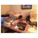 FURNITURE · Brown Sofa With 2 Recliners by La-Z-Boy · Rocking Chair · Barrel End Tables · Square End Table · Curio Cabinet · Maple Oval Coffee Table · Brown Recliner · Round Pedestal Maple Dining Table with 2 Extensions and 5 Chairs · 2 Maple Hutches, 2 Glass Doors and Drawers for Storage · Maple Hutch with Shelves and Drawers for Storage · Oval Oak Kitchen Table with 4 Chairs, Oak Extension in Table · White Corner Unit · Pastel Sofa · Wood Desk Chair · Fabric Rolling Chair · Computer Desk with Storage BEDROOM FURNITURE · Full Size Bed M/B/F · Mid Century Modern Headboard · Mid Century Modern Triple Dresser with Mirror · 2 Mid Century Modern Night Chests · Day Bed Twin Size, Cream Iron Frame is Cream Colored with Brass Accent, Mattress Included · Twin M/B · 2 Twin Headboards and Footboards and Side Rails · Full Size Bed M/B/F · 2 Small Night Chests · Wood Dresser · Full Size Adjustable Bed, Banner Mattress, Cool Max ACCESSORIES · Early American Tiered Lamp · Service Cart · 2 Crystal Lamps · Floor Lamp · 2 Small Safes · Blanket Rack CHINA – CRYSTAL · Assorted Princess House Crystal · Noritake Bambina 102 pcs · Royalton China 39 pcs · Fiesta · Corelle Snowflake Garland 35 pcs · Yamato Tea Set 16 pcs CARNIVAL GLASS · Pitchers · Glasses · Cups · Punch bowls · Goblets · Plates · Covered Containers · Covered Dishes PRINCESS HOUSE CRYSTAL · Tumblers · Wine Glasses · Juice Glasses · Bowls · Sugar & Creamer · Vases · Ice Buckets · Salt and Pepper · Cake Cover · Covered Dishes · Irish Coffee mugs COLLECTOR GLASSWARE · Walt Disney · Pepsi · Miss Piggy · Shrek · Snoopy · McDonald · Amber Glass HOUSEWARES · Small Appliances · Happy Birthday Musical Plate · Flatware · Pots & Pans · Baking Pans CHRISTMAS DECORATIONS · Garland with Lights · Wreaths · Fitz & Floyd · Music Boxes · Ornaments · Linens · Hallmark LADIES CLOTHES · Pants · Skirts · Jackets · Coats · Dresses LADIES ACCESSORIES · Belts · Handbags · Totes · Shoes and Boots CHILDRENS ACCESSORIES · Boys and Girls Shoes 9-10 APPLIANCES · Panasonic Microwave · Maytag Washing Machine · Hotpoint Gas Dryer · Kenmore Black Refrigerator LINENS · Mattress Pads · Sheets · Blankets · Towels · Tablecloths · Placemats BOOKS · Cookbooks GARAGE · Assorted Christmas · Vintage Red Duplex Fort Smith, Arkansas Toolbox with Tools · Yarn, Knitting Needles · 2 Storage Units with Wheels · Fishing Poles · 2 Green Bar Stools · 2 Outdoor Sunscreens 96” W x 72” L · Vintage Tools TOYS · Legos · Racetrack · Fire Trucks · Tonka Small Trucks · Barbie Castle · Puzzles UNUSUAL ITEMS · 2006 Super Bowl Pepsi Can · Lakers Back to Back Water Bottle · 1991 Desert Storm Coalition Peace Trading Cards (40) · Coke Bottles · 1984 Olympics Collector Trays and Programs · Antique and Vintage Telephones MISCELLANEOUS ITEMS · Vintage Corona Typewriter · Office Supplies · Singer Sewing Machine Model 306 with Cabinet · Damascus Grand Portable Sewing Machine · Sewing Supplies and Yarn · 2 Pair Adidas Tour 360 Golf Shoes Size 101/2, Like New Condition |