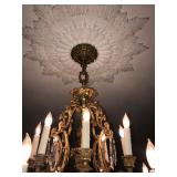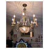 Italian Chandelier, 18 arms / lights with large crystal prisms and faceted bead designs, creates a stunning visual. 35” overall height