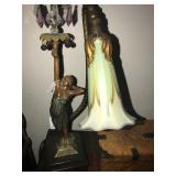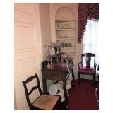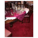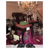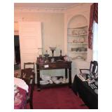 Baccarat and Italian crystal chandeliers, along with Stephen F. Austin, William B. Travis and Sam Houston, greet you upon entering. The stunning Quezal, “King Tut” glass-shade and brass chandelier, floor and table lamps are exquisite reminders of ageless, Art Nouveau design; with circa 1850’s, solid mahogany dining, parlor and entry pieces as pristine as when they were created. Half-Tester bed with provenance, stunning library filled with antique and newer, mixed genre books, Steuben cranberry glass, Baccarat stemware, Waterford, Baltimore Rose china by Haviland and much more.