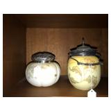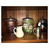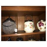 Collection Biscuit Jars: Mt Washington, Wedgwood, Cut Glass, Royal Doulton, Loetz, Wavecrest, Satin Glass, Cobalt Blue