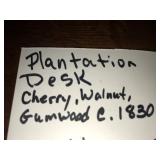 Antique Plantation Desk circa 1830, made with a combination of gumwood, walnut and cherry. 59”H, 35”W