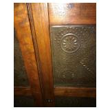 Pine Safe/Jelly Cupboard, two doors, six panels of pierced tin, with two drawers. 57”H, 38”W, 13”D Circa August 28, 1888 Fabulous Condition