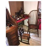 Oak Tables, Chairs, Settee, Rocking Chairs, Rope Bed, Brass Bed,