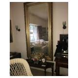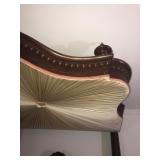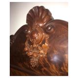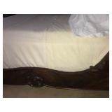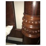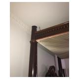 Three-Quarter Tester Bed: Magnificent mahogany bed is 63” L, 68”W. Two posts at the headboard are 110” high and 7” in diameter. In the style of P Mallard, circa 1860