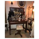 Antique Walnut Tea Cart /Removable Glass Top Tray