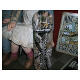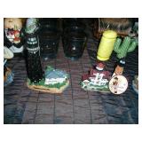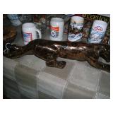 Panther Figure Dipped in 14K Gold, Many Vintage Metal Signs, Beer Steins and Glasses, Wood Display Box, Pins and Jewelry, Indian Pottery, Brass Blow Torch, Old Man & Woman Dolls, Vintage Balance Scale, Large Medicine Cabinet, Old Drying Rack, Large Planter on Stand, Painted Desk, Glass Top Table, Smoker/Grill, Michelob Chalk Board, Wicker Table, Stool, Quilt Rack, Drop Leaf Coffee Table, Bookcase, Hall Tree, End Tables, Vintage Sofa, WWII Cot, DVD’s, Jack Stands, Wood Boxes, Banks, Bowl & Pitchers, Glass Vases, Shoe Lathe, Many NASCAR Items including Knives, Flags and More, Coca Cola Clock, Bottles and More, Horse Figure, Pottery Vases, Heavy Duty Rolling Dollies, Candles, Star Wars 3D Lights, Glasses and More, Vintage Decanters, Dish / China Sets, Size 12 Winchester and Wolverine Boots, Painted Window, Wood Signs, Glass Light Fixture, Vintage Traffic Light, Jewelry, Lot of Pins, Vintage Bottles, Lamps. Paintings and Prints, Old Mantel Clock, Keg Tap, Bird House, Mole Trap, Cutting / Serving Board, Crystal, Johnson Brothers Plates, Learn the Piano Set, Metal Sprayer, Salt & Pepper Shakers, Light House Plates, Metallic Prints & Figurines, Carnival Glass, Several Christmas Items including Vintage Yard Santa, Serving and Cake Platters, Parker Angel Pen, Thread, Mirrors, Cow Planter, Porcelain Dolls, Leather Care Kit, Storage Tubs, More Coming in Tomorrow, And our Four for a Dollar / Free Tables.