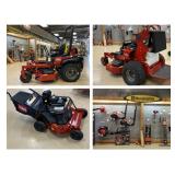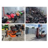 There is a huge volume of new parts & hardware as well as new and used mowers. Ditch Witch SK 500 Walk Behind Tracked Loader, Tools, shelving, forklift, office furniture and miscellaneous items.