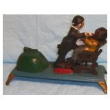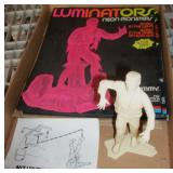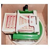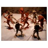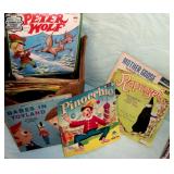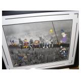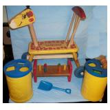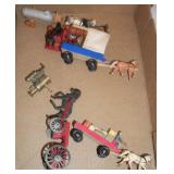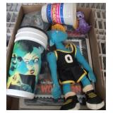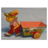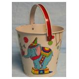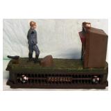 TV, Movie & Monster--many MOC: Alien(s), Star Trek, Ghost Busters, Marx Universal Monsters figures, books w classic Monster Posters, Micro-machines, 60’s eraser monster heads & glowing nails OSS. Adult Spiderman Costumes MIP, Monster Little Big Heads MOC, Mattel Popeye Jack in box-working, other J-I-T-boxes, Ideal Punkin Puss figs from Magilla Gorilla, FAO Schwartz Batman Set NRFB, Transformer weapons & figs, Limited Edition Print Warner Brothers characters eating lunch on steel girder w/ old workers. Antique: larger scale German Steam toy, wooden animals inc. Schoenhut circus parts, Triggie Bagatelle, 5 & Dime, CI Pickup, tin litho water can, globes w/defunct airlines on base, German Putz +. Pressed Steel: Smith-Miller Armored Truck, Doepke road grader, 1958-69 Tonkas-from large to mini size, John Deer Tractors, German Cement mixer, Marx, Nylint, Diecast Burago & Maisto in larger scales. Original Corgi 007 Silver Jag, Military: Tanks & other vehicles for Dioramas & single larger scale weaponry. Ultimate Soldier Military Playset MIB, 68 Flock Joe, newer Joes, vehicles, Equipment +, Accessories for 3 ½ Joes. Disney: early Fisher-Price Donald Duck, Mickey Mousketeer costume, tray puzzles, Fantasia plush characters, original re-release movie poster of Fantasia 1990. Early Pinocchio Poster, original Disney artist pencil sketch & finished movie cel- framed. Soldiers inc Barclay, Deetails, Britains, Beton, Rel Indian Playset w/box +. Eclectic Mix: 60’s Halloween plastic Jack-O-Lanterns, matched pair Hubley cap rifles, Ohio Art Shooting Gallery, Tin WU German rooster, 1939-64 World’s Fair & cereal premiums. Tom Mix straight shooter compass keychain, Artist’s handmade marble, jars of machine marbles, BO Poodle MIB, Biggest size J. Chein Easter Cart, Circus Bucket, WU Walking Duck family MIB, Fantastic fabric with old comic book covers on it. Thaller & other German HO train related. Cardboard buildings, some trains in HO & larger scales inc American Flyer set + accessories.