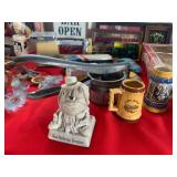 Antique electrical fans Antique car signs Modeled crystal glass Antique Piano Porcelain collectibles Figurines Antique secretarial desk Sewing machine desk File cabinet Deer horns Picture frames Kitchen table with two chairs Floor rug Sanyo refrigerator crystal glass cups Microwave Coffee makers Silverware Kitchen plates Kitchen pots and pans Kitchen misc items Kitchen stools Portable AC unit Black and decker coffee maker Office desk set Crystal lamps Phones mM Brown reclining chair m Vizio TV SEGA genesis with games Collectible cars Nintendo 64 VHS player Anaheim angels collectibles Anaheim angels memorabilia Brown sofa Samsun TV Vintage desk Kirby Vacuum Suit cases Christian memorabilia White dresse Canes King bed with bedding Sewing equipment Major safe Disney collectibles Cloths Green Bay gear Stuffed animals Computer screen m Bradford drawings Dell printer