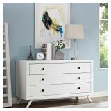Tracy 3-Drawer White Wood Dresser by MODWAY A vintage look and rich mid-century design adorn the tracy bedroom dresser. This finely crafted toffee brown stained piece comes with three easy-glide storage drawers, antique finish metal handlesand outstretched platform legs. Built upon solid edging and artisanship techniquesthe tracy dresser requires assembly and wipes clean with a dry cloth. This item is NEW. Please come Preview! No Refunds After Item Has left the Building. Verify the condition of your Item before you leave, Thanks. MSRP: $ 495 (193) |