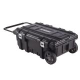 Husky 35 in. Rolling Tool Box The Husky 35 in. Mobile Work Cart has a 25 Gal. holding capacity, great for storing large power tools, accessories and gear. The heavy-duty removable tool tray is extra-large and great for storing multiple sized hand tools. This 35 in. work cart comes with metal latches and a built-in padlock eye (lock not included) to keep all your gear secure in the garage or on the job site. A one-of-a-kind electrical cord outlet allows you to charge your power tools or cellphone while they are locked securely inside the box. The Husky 25 Gal. work cart comes with a water seal, adding additional protection for your tools and gear. Large 8 in. all-terrain wheels and extendable metal tubular handle make this cart very mobile on any surface. The heavy-duty cover comes with 2 x 4 tracks, great for mounting miter saws and power tools or simply for cutting wood or piping. The ruggedly constructed body is designed to stack, allowing for convenient storage or transporting of all your tool and gear necessities. This item is NEW. Please come Preview! No Refunds After Item Has left the Building. Verify the condition of your Item before you leave, Thanks. MSRP: $ 60 |