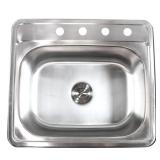 eModernDecor Top Mount Drop-In Stainless Steel 18-Gauge 25 in. x 22 in. x 9 in. Deep 4-Faucet Holes Single Bowl Kitchen Sink 25 in. Top-mount/Drop-in Stainless Steel Single Bowl Kitchen Sink- High Quality T-304 18-Gauge Stainless Steel. Brushed Stainless Steel Finish Each sink is manufactured with an excellent sound-deadening system that absorbs and reduces the noise made by garbage disposal and running water Benefits & Features Top mount rim design allows the sink to sit on top of the countertop. Comes with 4 faucet holes drilling and 3 faucet caps are included for faucet installation Easy upgrade or replacement for your new or old kitchen Standard 3.5 in. drain openings Fully Protected by heavy duty sound deadening pads and undercoating for noise reduction Brushed stainless steel finish deck and bowl. Strainer/drainers are sold separately. Sink Dimensions Exterior Dimensions 25 in. x 22 in. Bowl Interior: 21 in. x 15-3/4 in. x 9 in. This item is NEW. Please come Preview! No Refunds After Item Has left the Building. Verify the condition of your Item before you leave, Thanks. MSRP: $ 123 |