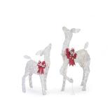HOME ACCENTS HOLIDAY Polar Wishes 36 in. 60-Light and 28 in. 30-Light White PVC Set of 2 Deer Whether you place it indoors or outdoors, this set of 2 White PV Deer will light up your lawn. It features a white wire frame and is made of sturdy PVC. The structure is illuminated by 180 white LED lights that cast off a warm flow. Easily set it up with the stakes and enjoy. This item is NEW. Please come Preview! No Refunds After Item Has left the Building. Verify the condition of your Item before you leave, Thanks. MSRP: $ 99 |
