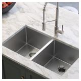 kraus Standart PRO 33in. 16 Gauge Undermount 50/50 Double Bowl Stainless Steel Kitchen Sink KRAUS kitchen sinks are known for excellent quality and sturdy construction. The Premier Collection sinks are the perfect combination of quality, durability and convenience. Made from durable T-304 stainless steel, this undermount sink can easily stand up to constant use and handle your toughest kitchen tasks. Enjoy the advantage of high-end kitchen sinks with the best-selling Standard PRO Series. This KRAUS sink features a clean contemporary design and wear-resistant finish with a beautiful sheen that complements most kitchen appliances. This item is NEW. Please come Preview! No Refunds After Item Has left the Building. Verify the condition of your Item before you leave, Thanks. MSRP: $ 291 |