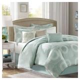 Madison Park Mason Bedding. The Mason bedding features a flowing medallion pattern against a seafoam blue-green background. Queen. New in Retail Packaging. MSRP $290.00. |