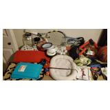 Samsung 39" LED TV with Remote - Great Condition Magnavox 32" Flat Screen TV w/ Remote Sony DVD Player w/ Remote HP Envy 4502 Printer - Like New Vintage Recliner Tan Leather Chair w/ Pincushion Accents by Sam Moore Furniture Genuine Leather Ottoman w/ Storage - Tan / Brown Small & Large Wall Mirrors Large Black Dream Catcher Brand New Area Rug - Never Used 2 Decorative Floor Vases w/ Stands & 3 Smaller Vases Blankets / Throws Serving Tray - Animal Print 3 Stackable Animal Print End Tables Stemware & Other Misc. Bar Glassware Crate & Barrel Dish Set - Great Condition Kirkland Saucepan & Frying Pan Set Seasoned Large Wood Salad Bowl - One Solid Piece Knife Sets Silverware Set Stainless Steel Mixing Bowls Baking Tins Kitchen Utensils / Tools Black & Decker 4 Slice Toaster Full Length Mirror - 63.5"H x 3.5"W Accent Chair - Made In Italy Microsuede Chaise Lounger w/ 2 Matching Pillows Lockable Wood Armoire w/ 1 Drawer & Full Length Mirror - w/ Lock - 73"H x 21.5"L × 24.25" D 4 Drawer Solid Wood Bedroom Entertainment Center - 70.25"H x 23.5D x 46"L (inside 37.5") 3 Piece Wood Matching Bedroom Set - TV Entertainment & 2 End Tables 2 Tabletop/End Table Lamps - Matching Bed Blanket Pillowcases King Bed Sheet Set - Very Soft & Like New Standard Bed Pillows - Guest Bedroom - Very Comfortable - Great Condition & Pillowcase Protectors - Alarm Clock (Bedside Table) Womens Purses & Handbag Closet / Clothing Cloth Organization Systems Wood Shoe Shelves & Plastic Shoe Storage Panasonic Cordless Telephone Handsets - 4 Graco Playpen - Like New / Never Used & Bassinet - Stroller Kids Toys Dog Supplies - Bowls, Leashes, Food Mats, Bed, Small Crate & Carrier Workout Gear - Small Weights, Jumprope, Gloves, Elastic Bands, Mats, etc. Personal Umbrellas Sports Equipment Hookah & Equipment White Bath Towels - Small & Large Bathmats & Shower Curtains Small Trashcans Toilet Paper Holder Stand Showerhead & Shower Handle Toiletries Cleaning Products & Cleaning Supplies 3 Piece Patio Furniture Set - Black w/ Copper Colored Outdoor Cushions - 2 Chairs w/ Padded Ottomans & 1 Sun Lounger w/ Wheels Large Outdoor Patio Umbrella w/ Stand - Tan Solar Stand Alone Fountain Faux Concrete Outdoor Owl Outdoor Entry Mat Pool Floaties Small Plastic Storage Bins Heavy Duty Floor Fan Lightbulbs 2 Black Collapsible Yard Hoses |