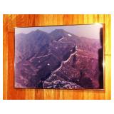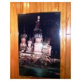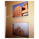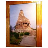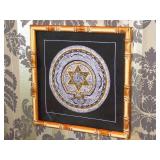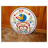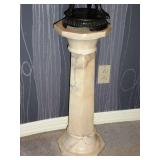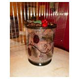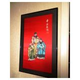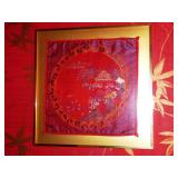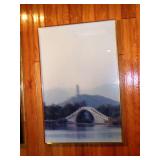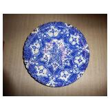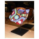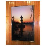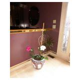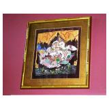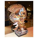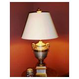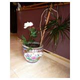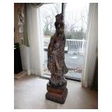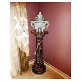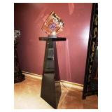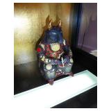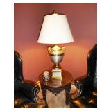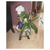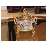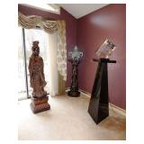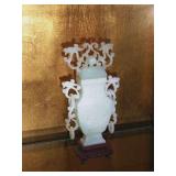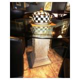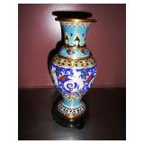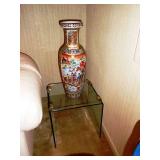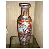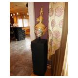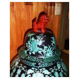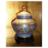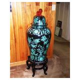- Large hand painted Asian palace floor urn w/ wood base and lid w/ foo dog finial