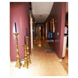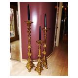 - Set of 3 vintage large brass elaborate alter floor candle holders