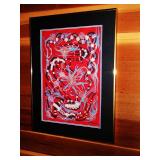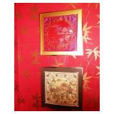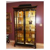 - Chinese Chinoiserie hand painted lacquered cabinet w/ beveled glass doors and gold leaf interior