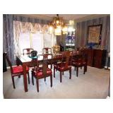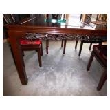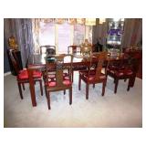 - Asian carved mahogany dining table with 3 leaves and 8 carved back chairs