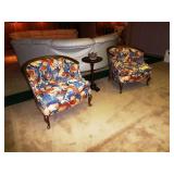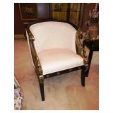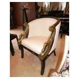 - Pair black lacquer armchairs with carved gilt swans & ivory upholstery