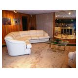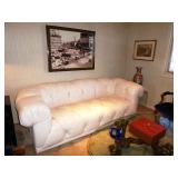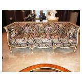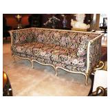 - Custom French-style tapestry upholstered sofa w/ gilded ivory wood frame