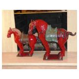 - Pair of vintage porcelain turquoise glazed foo dogs
