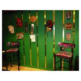 - Set of 4 mahogany carved bar stools w/ oval open backs & arms