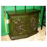 - Small vintage whitewashed cabinet w/ natural wood top & paneled doors