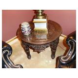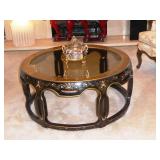 - Chinese Chinoiserie round coffee table w/ inset beveled glass top