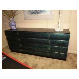 - Custom vintage baby black lacquer pool table with MOP inlay