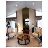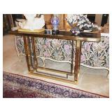 - Hollywood Regency gold column coffee table w/ oval glass top