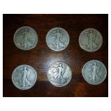 Walking Liberty Half Dollars: 1920-S, 1944-S, 1941-S, 1918-D, 1921-S, 1943-S
