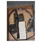 Firearms: 1. Colt – Mod. AR15 SP1 – 223 Rem. Cal. Semi-Auto Rifle – w/20” Barrel w/Flash Hider – Blued Finish – w/Black Synthetic Stock, Pistol Grip & Triangular Forearm – Barrel Marked CMP Chrome Bore – w/Canvas Web Sling – Serial # SP59698 (CANNOT GO TO MARYLAND!) 2. Springfield – Mod. M1 Garand – 30-06 Cal. Semi-Auto Rifle – w/24” 5-44 Dated SA Barrel – w/IH Stock, IH Trigger Assembly, IH Gas Cap Screw & Front Sight – Right Receiver Post Marked “D2829117” 3. Marlin – Mod. 336 – 35 Rem. Cal. Lever Action Rifle – w/20” Barrel w/Sights & Full Length Mag. – Blued Finish – w/Capped Pistol Grip Wood Stocks – w/Marlin 1870-1970 Medallion in Right Side of Stock – w/Bushnell 4x Banner Scope & Mounts 4. Remington – Mod. 66 Nylon – 22LR Only Cal. Semi-Auto Rifle – w/19” Barrel w/Sights – Blued – w/Capped Pistol Grip Wood Like Nylon Checkered Stocks w/White Accents – w/Tubular Magazine Fed From Butt – w/Simmons 22 Mag. 4x32 Scope & Mounts 5. Rossi – Mod. 92 – 44-40 Win. Cal. Lever Action Rifle – w/20” Blued Octagon Barrel w/Full Magazine – w/Case Colored Frame & Crescent Butt Plate – w/Straight Grip Wood Stocks 6. Marlin – Mod. 9 – 9mm Cal. Semi-Auto Rifle – w/16 ½” Barrel – Blued Finish – w/Aftermarket Black Synthetic “Muzzelite” Stock – In Bull Pup Configuration 7. New England Firearms – Mod. SS1 Sportster – 22LR Cal. Single Shot Rifle – w/20” Barrel – Blued – w/Black Textured Pistol Grip Synthetic Stocks – w/Leupold Gilmore Red Dot Scope 8. Winchester – Mod. Defender – 12ga. 3” Pump Action Shotgun – w/18” Cyl. Choke, Ported Barrel w/Full Length Extended Magazine – Blued – w/Knox X Adjustable Pistol Grip Butt Stock w/Ribbed Wooden Forearm 9. High Standard – Mod. Ten Police Shotgun – 12ga. Semi-Auto Shotgun – w/18” Barrel – w/Black Synthetic Pistol Grip – w/Sights – w/Cary Handle 10. Ruger – Mod. 44 Carbine – 44 Mag. Cal. Semi-Auto Rifle – w/18” Barrel w/Rifle Sights – Blued Finish – w/Pistol Grip Wood Stock 11. American Ind. – Calico – Mod. 100 – 22LR Cal. Semi-Auto Rifle – w/18” Barrel w/Flash Hider – w/Synthetic Pistol Grip & Forearm – w/Folding Stock – w/100Rd Rotary Mag. (CANNOT GO TO MARYLAND!) 12. Volunteer – Mod. Commando Mark III – 45 ACP Cal. Semi-Auto Rifle – w/16 ½” Barrel w/Flash Hider – Blued Finish – w/Wood Stock & Pistol Grip Forearm – w/Mag. 13. Universal – Mod. M1 Carbine – 30 Carb Cal. Semi-Auto Rifle – w/18” Barrel – Blued – w/Smooth Wood Pistol Grip Stock – w/Mag. 14. Sig Sauer – Mod. P229 – 40 S&W Cal. Semi-Auto Pistol – w/4” Barrel w/3-Dot Night Sights – Matte Blued Finish – w/Crimson Trace Laser Grips 15. Smith & Wesson – Mod. 15-3 – 38 Spl. Cal. Double Action Revolver – w/4” Barrel w/Sights – Blued Finish – w/Case Hardened Smooth Trigger & Hammer – w/Pachmayr Rubber Grips 16. Browning – Mod. Hi-Power – 9mm Cal. Semi-Auto Pistol – w/4 ½” Barrel w/Sights – Blued Finish – w/Checkered Black Pachmayr Grips – w/Extra Mag. 17. Ruger – New Model Single Six – 32 H&R Mag. Cal. Single Action Revolver – w/4 ¾” Barrel – Blued Finish – w/Ruger Smooth Wood Grips & Silver Eagle Medallions 18. Ruger – New Model Blackhawk – 45 Colt Cal. Single Action Revolver – w/7 ½” Barrel w/Sights – Blued Finish – w/Checkered Black Pachmayr Grips 19. AMT – Mod. Back Up – .380/9mm Kurz Cal. Semi-Auto Pistol – w/2 ½” Barrel – Stainless Finish – w/Checkered Black Grips – w/2 Extra Mags, 3 Total 20. Ruger – Mod. Super Blackhawk (3-Screw) – 44 Mag. Cal. Single Action Revolver – w/7 ½” Barrel w/Sights – Re-Blued Finish – w/Ruger Wood Grips – w/Ruger 2pc. Box & Pamphlets 21. Ruger – Mod. Security Six – 357 Mag. Cal. Double Action Revolver – w/4” Barrel – Matte Stainless Finish – w/Custom 2pc. Wood Grips 22. Kahr – Mod. K9 – 9x19mm Cal. Semi-Auto Pistol – w/3 ½” Barrel – Matte Black Finish – w/Wood Grips – w/Magazine – w/Kahr Arms Box 23. Ruger – Mod. New Vaquero – 45 Colt Cal. Single Action Revolver – w/5 ½” Barrel – Blued – w/Case Hardened Frame – w/Ruger Hard Rubber Grips – w/Case & Manual 24. Ruger – Mod. Vaquero – 45 Colt Cal. Single Action Revolver – w/3 ¾” Barrel w/Sights – Blued Finish – w/Case Hardened Frame – w/Ruger Bird Head Black Grips – w/Case 25. Smith & Wesson – Mod. 28-2 Highway Patrolman – 357 Mag. Cal. Double Action Revolver – w/6” Ribbed Barrel w/Sight – Blued Finish – w/Case Colored Hammer & Trigger – w/S&W Checkered Medallion Target Wood Grips – w/Original 2pc. Box & Manual 26. Kahr – Mod. MK9 – 9x19mm Cal. Semi-Auto Pistol – w/3” Barrel w/Sights – Stainless Finish – w/Kahr Black Plastic Gris – w/Extra Mag. – w/Box 27. Thompson Center Arms – Mod. Contender – 223 Rem. Cal. Single Shot Pistol – w/Super 14” Barrel w/Sight – Blued Finish – w/Engraved Mountain Lion Scene – w/Pachmayr Pistol Grip – w/Black Pachmayr Forearm – w/Thompson Center 3RP Pistol Scope & Mount A. Thompson Center Arms – 12” 45 Colt/410ga. Blued Round, Vent-Rib Contender Barrel – w/Choke B. Thompson Center Arms – 10” 357 Mag. Cal. Blued Round to Octagon Ported, Choked Contender Barrel w/Sights C. Thompson Center Arms – 10” 25-35 Win. Cal. Blued Round to Octagon Contender Barrel w/Front Sight & Wooden Forearm D. Ruger – Mod. Old Army – 45 Cal. Black Powder Revolver – w/7 ½” Barrel w/Sights – Stainless Finish – w/Ruger Wood Grips E. Colt – Mod. 1851 Navy – 36 Cal. Single Action Black Powder Revolver – w/7 ½” Octagon Barrel – Blued/Case Colored Finish – w/Smooth Wood Grips – w/Engraved Cylinder – w/Blue Colt Box F. Uberti – Mod. 1849 – 31 Cal. Black Powder Revolver – w/4” Octagon Barrel – Blued Case Colored Finish – w/Smooth Wood Grips – w/Brass Trigger Guard – w/Engra