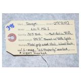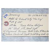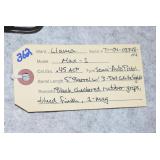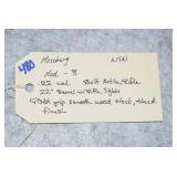 Firearms #180-387, AA-PP – To Be Sold at 1:00 PM (Approx.): 180. Winchester – Mod. 71 Deluxe – 348 WCF Cal. Lever Action Rifle – w/24” Barrel w/Hooded Front Sight – Blued – w/Checkered Capped Pistol Grip Wood Stock w/Metal Butt – w/Bolt Peep Sight – Mfg. in 1942 – High Condition Gun 181. Winchester – Mod. 71 Standard – 348 Win. Cal. Lever Action Rifle – w/24” Barrel w/Sights – Blued – w/Pistol Grip Wood Stocks – w/Hooded Ramp Front Sight – Mfg. 1955 182. Winchester – Mod. 42 – 410ga. 3” Pump Action Shotgun – w/26” Full Choke Barrel w/Bead Sight – w/Pistol Grip Wood Stock & Ribbed Forearm – Mfg. 1956 183. Winchester – Mod. 63 Super Speed/Super X – 22LR Cal. Semi-Auto Rifle – w/23” Barrel w/Front Sights – Blued Finish – w/Smooth Wood Pistol Grip Stock w/Metal Butt Plate – w/Redfield Rear Receiver Adj. Peep Sight – Mfg. in 1948 184. Winchester – Mod. 1906 Take Down – 22 Short Cal. Pump Action Rifle – w/20” Round Barrel w/Sights – Blued – w/Straight Grip Wood Stocks – w/Beech Combo Globe Front Sight & Rear Barrel Sight, Tang Lyman Large Disc Rear Target Peep Sight – w/Tubular Magazine – 1st Year Production in 1905-06 – Here is an Excellent Example w/Great Sights 185. Winchester – Mod. 70 (Standard) (Pre-64) – 270 Win. Cal. Bolt Action Rifle – w/24” Barrel w/Sights – Blued Finish – w/Checkered Pistol Grip Wood Stock w/Metal Checkered Butt Plate – w/Original Box that Serial # Matching Gun – Mfg. in 1951 186. Ruger – Mod. Mini 14 – 223 Rem. Cal. Semi-Auto Rifle – w/20” Barrel w/Flash Hider – Stainless Finish – w/Pistol Grip Wood Stock 187. Remington – Mod. 700 BDL DM Enhanced Engraved – 30-06 Cal. Bolt Action Rifle – w/22” Barrel w/Rifle Sights – Blued – w/Engraved Receiver – w/Capped Pistol Grip Checkered Wood Stock – w/Bushnell 3x9x Scope & Leupold Scope Mounts 188. Remington – Mod. 700 BDL Enhanced Engraved – 300 Win. Mag. Cal. Bolt Action Rifle – w/24” Barrel – Blued Finish – w/Capped Pistol Grip Checkered Wood Stock w/Recoil Pad – w/Engraved Receiver & “Ram” Engraved Floor Plate – w/Simmons 3.5-10x50 Matte Finish Scope & Leupold Quick Detach Scope Mounts 189. Stevens – Mod. 311 Series H – 410ga. Double Barrel – w/26” Blued Solid Rib Barrels – w/Case Hardened Receiver – w/Checkered Pistol Grip Stocks w/Original Butt Plate 190. Carl Walther – Mod. Ulm/Do. Sportwaffenfabrik – 22 Cal. Bolt Action Rifle – w/22” Barrel w/Rifle Sights – Blued Finish – w/Black Capped Pistol Grip Checkered Wood Stock w/Adj. Comb & Raised Cheek Piece – w/Safety Button in Stock – w/Mag. 191. Remington – Mod. 7600 – 243 Win. Cal. Pump Action Rifle – w/22” Barrel w/Rifle Sights – Matte Blued Finish – w/Synthetic Pistol Grip Stocks – w/Leather Sling – w/Leupold Rings & Base – w/Bushnell 3x9x Scope 192. FN – Mod. Automatic “Brownings Patent” – 22 LR Cal. Semi-Auto Take Down Rifle – w/19 ½” Barrel w/Sights – Blued – w/Balled Pistol Grip Wood Stocks w/Metal Butt Plate – w/Tube Magazine in Stock – w/Browning 4x Scope & Mounts 193. Smith & Wesson – Model of 91 “1st Model Single Shot” – 22LR Cal. Single Shot Pistol – w/6” Barrel w/Adj. Open Sights – Blued Finish – w/Case Hardened Hammer & Trigger Guard – w/Checkered Black Hard Rubber Grips – Lots of Finish 194. Colt – Mod. New Police/Police Positive 32 – 32 Colt Cal. Double Action Revolver – w/4” Barrel – Blued Finish – w/Colt Hard Rubber Checkered Grips – Mfg. 1909 195. Colt – Mod. Woodsman “Bullseye Match Target” – 22LR Cal. Semi-Auto Pistol – w/6.63” Barrel w/Adj. Target Sights – Blued Finish – w/Checkered Wood “Elephant Ear” Grips – w/Original Mag – Mfg. 1940 – Excellent Example 196. Willi Korth – Mod. Sport Revolver – w/22LR Cal. Double Action 6-Shot Revolver – w/6” Vent-Rib Barrel – Blued Finish – w/Original Wilhelm Hoffman Stippled Walnut Target Grips – w/Adj. Open Sights – w/Fluted Cylinder – Marked “W. Germany” – Only 7.141 Korth Revolvers Mfg. Between 1964-1981 197. Colt – Mod. Detective Special – 38 Spl. Cal. Double Action Revolver – w/2” Barrel – Blued Finish – w/Mother of Pearl Grips 198. Smith & Wesson – Pre-Model 29 (4 Screw) – 44 Mag. Cal. Double Action Revolver – w/6 ½” Barrel w/Orange Ramp Front & Adj. Rear Sights – Blued Finish – w/Non-Factory Engraved Cylinder – w/Target Trigger, Hammer & Grips (3-Ts) – w/Carved “E” on Butt of Grip – Marked “Engraved by S. Moro, 2-80” AA. Cabelas/F. LLipietta – Mod. 1851 Navy Yank US Marshall – 44 Cal. Black Powder Revolver – w/5” Barrel – Stainless Finish – Highly Engraved – w/Brass Trigger Guard – w/Wood Grips – Appears Unfired w/Box 199. Ruger – Mod. Blackhawk Flat-Top (3 Screw) – 357 Mag. Cal. Single Action Revolver – w/4 ¾” Barrel w/Adj. Open Sights – Blued Finish w/”Flat-Top” Cylinder Frame – w/Smooth Wood Ruger Grips w/Silver Eagle – w/Period Factory Original Matching Serial # Box 200. Ruger – Mod. NO. 1-A Light Sporter – 7x57 Cal. Single Shot Rifle – w/22” Barrel w/Front Sights – Blued – w/Checkered Capped Pistol Grip Wood Stocks w/Alexander Henry Forearm – w/Rings 201. Remington – Mod. 1100 LT Sporting 20 – 20ga. 2 ¾” Semi-Auto Shotgun – w/28” Rem. Choke, Vent-Rib Barrel – Blued Finish – w/Black Capped Pistol Grip Checkered Wood Stocks w/Recoil Pad – w/Custom Briley IM Choke 202. Savage – Mod. 111 – 25-06 Rem. Cal. Bolt Action Rifle – w/22” Barrel – Blued – w/Brown Laminated Pistol Grip Thumb-Hole Vented Forearm Wood Stock – w/BSA Platinum 6x24x Target Dot Reticle Scope w/Sunshade & Metal Caps & High Mounts 203. Taurus – Mod. Circuit Judge – 45LC Cal./410ga. Revolver Rifle – w/18 ½” Barrel – Blued – w/Capped Pistol Grip Smooth Wood Stocks 204. Savage – Mod. 24V Series-B – 222 Rem. Ca