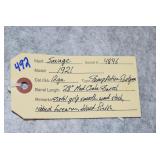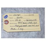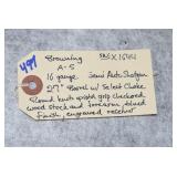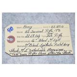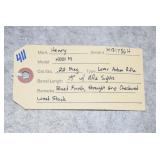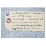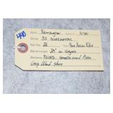 Firearms #388-500, QQ-ZZ, AAA-GGG – To Be Sold at 11:00 AM (Approx.): 388. Mossberg – Mod. 500E – 410ga. 3” Pump Action Shotgun – w/24” Full Choke, Vent-Rib Barrel – Blued Finish – w/Pistol Grip Checkered Wood Stock w/Recoil Pad 389. Sears – Mod. 54 – 30-30 Win. Cal. Lever Action Rifle – w/20” Barrel w/Rifle Sights – Blued Finish – w/Straight Grip Smooth Wood Stock – w/Tube Mag. – Side Tapped w/Mounted Scope 390. H. & R. – Mod. Topper 158 – 20ga. 3” Single Shot Shotgun – w/28” Blued Mod. Choke Barrel – w/Case Hardened Receiver – w/Pistol Grip Smooth Wood Stock w/Recoil Pad QQ. Thompson Center – Mod. Hawken – 50 Cal. Black Powder Flintlock Rifle – w/28” Blued Octagon Barrel – w/Case Colored Lock – w/Straight Grip Smooth Wood Stock w/Raised Cheek Piece – w/Brass Furniture & Patch Box – w/Leather Sling – w/Rifle Sights – No Ramrod 391. Remington – Mod. 870 Express Mag. – 12ga. 3” Pump Action Shotgun – w/28” Rem. Choke, Vent-Rib Barrel – Matte Blue Finish – w/Checkered Pistol Grip Wood Stocks 392. Stevens – Mod. 67 Series E – 12ga. 3” Pump Action Shotgun – w/28” Mod. Choke Barrel w/Bead Sight – Blued – w/Checkered Pistol Grip Wood Stocks 393. Remington – Mod. 6 – 22 Cal. Single Shot Rifle – w/20” Barrel w/Sights – Re-Blued – w/Straight Grip Wood Stocks w/Remington UMC Metal Butt Plate 394. Sears – 20ga. 3” Single Shot Shotgun – w/28” Barrel w/Bead Sight – Blued Finish – w/Pistol Grip Wood Stocks w/Sears Butt Plate 395. J. Stevens – Favorite Mod. 1915 Take Down – 22LR Cal. Single Shot Rifle – w/24” Round Barrel w/Sights – Blued Finish – w/Straight Grip Wood Stocks w/Stevens Hard Rubber Plate 396. Winchester – Mod. 1897 Trench Gun – 12ga. Pump Action Shotgun – w/20” Choked Barrel Marked “CYL” w/Front Bead Sight – Re-Blued – w/Pistol Grip Smooth Wood Stock – Heat Shield & Bayonet Lug Ground Off 397. Rossi – Mod. 62 – 22 Cal. Pump Action Rifle – w/23” Round Barrel w/Sights – Blued – w/Straight Grip Wood Stock w/Ribbed Forearm 398. Rossi – Mod. 62 SA Carbine Take Down – 22 Cal. Pump Action Rifle – w/16 ½” Barrel w/Sights – Blued – w/Straight Grip Wood Stock w/Ribbed Forearm 399. Keystone Arms – Mod. Cricket SS – 22LR Cal. Bolt Action Rifle – w/16” Barrel w/Sight – Stainless Finish – w/Grey Laminated Pistol Grip Wood Stock – w/Chipmunk 4x32 Scope & Mounts 400. Colt – Mod. 1908 Hammerless – 380 ACP Cal. Semi-Auto Pistol – w/3 ¾” Barrel – Nickel Finish – w/Mother of Pearl Grips – Mfg. in 1910 401. H. & R. – Mod. 929 “Side Kick” – 22 Cal. Double Action Revolver – w/6” Barrel – Blued – w/Factory Grips – w/Leather Holster 402. Swedish Mauser – 8mm Cal. Bolt Action Sporterized Rifle – w/24” Barrel – w/Custom Capped Pistol Grip Wood Stock w/Raised Cheek Piece – w/Tasco 6x40 Scope & Scope Mounts RR. Columbia Arms – 12ga. Single Barrel Shotgun – w/30” Barrel – w/Pistol Grip Wood Stocks – Needs Attention 403. Stevens – Mod. 77A – 12ga. Pump Action Shotgun – w/28” Barrel w/Savage Super Choke – w/Pistol Grip Wood Stock 404. H. & R. – Mod. 48 Topper – 16ga. Single Barrel Shotgun – w/28” IM Choke Barrel – Blued Finish – w/Pistol Grip Wood Stocks 405. Winchester – Mod. 60 – 22 Cal. Single Shot Rifle – w/23” Barrel w/Rifle Sights – w/Pistol Grip Wood Stock 406. Savage – 22 Cal. Pump Action Rifle – w/24” Octagon Barrel – w/Balled Pistol Grip Wood Stock w/Ribbed Forearm & Savage Metal Butt Plate – Barrel Not Screwed Tight to Receiver & Drilled – Missing Clip 407. Rossi – Mod. Coach Gun – 12ga. Hammer Double Barrel Shotgun – w/20” Barrel – Blued Finish – w/Round Knob Pistol Grip Wood Stock w/Rubber Recoil Pad – w/Double Triggers 408. New England Firearms – Mod. Pardner – 410ga. Single Barrel Shotgun – w/22” Barrel – Blued Finish – w/Case Hardened Frame – w/Pistol Grip Wood Stock 409. Henry – Mod. H004 Golden Boy – 22LR Cal. Lever Action Rifle – w/20” Octagon Barrel w/Rifle Sights – Blued Finish – w/Straight Grip Wood Stock 410. Henry – Mod. US Survival Rifle Take Down – 22LR Cal. Only Semi-Auto Rifle – w/16” Barrel w/Sight – Blued – w/Black Synthetic Pistol Grip Stock – w/2 Mags 411. Henry – Mod. H001M – 22 Mag. Cal. Lever Action Rifle – w/19” Barrel w/Rifle Sights – Blued Finish – w/Straight Grip Checkered Wood Stock SS. F.K. Tryon & Co. – 68 Cal. Percussion Muzzleloader – w/44” Octagon to Round Barrel – w/Straight Grip Wood Stock TT. CVA – 50 Cal. Percussion Muzzleloader – w/32” Octagon Barrel w/Rifle Sights – Blued Finish – w/Straight Grip Wood Stock w/Raised Cheek Piece – w/Double Set Trigger UU. Navy Arms – Mod. 1851 – 44 Cal. Black Powder Revolver – w/7 ½” Barrel w/Sights – Blued Finish – w/Brass Frame – w/Wood Grips – w/Case Hardened Hammer VV. F. Llipietta – Mod. 1858 – 44 Cal. Black Powder Revolver – w/5 ½” Octagon Barrel w/Sights – Blued Finish – w/Wood Grips WW. F. Llipietta – Mod. 1860 – 36 Cal. Black Powder Revolver – w/7 ½” Octagon Barrel – Blued Finish – w/Case Hardened Frame – w/Wood Grips XX. Reproduction – 45 Cal. Percussion Single Shot Pistol – w/Brass Frame 412. Ruger – Mod. Automatic – 22LR Cal. Semi-Auto Pistol – w/6” Tapered Barrel w/Sights – Blued Finish – w/Pachmayr Grips – w/2 Extra Mags – 3 Total 413. Kahr – Mod. K9 – 9mm Cal. Semi-Auto Pistol – w/3 ¾” Barrel w/Sights – Stainless/Blued Two-Tone Finish – w/Crimson Trace Laser Grips 414. Kel-Tec – Mod. P-11 – 9mm Luger Cal. Semi-Auto Pistol – w/3” Barrel w/3-Dot Sights – Blued Finish – w/Kel-Tec Grips – w/Box 415. Ruger – Mod. Single Six (3-Screw) – 22 Cal. Single Action Revolver – w/5 ½” Barrel – Blued Finish – w/Ruger Silver Eagle Smooth Wood Grips – Note: Pre Dash Serial