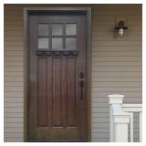 -Mahogany prefinished in hickory stain with matching frame adds style and elegance to your front door
