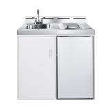 Complete all-in-one convenience with a refrigerator-freezer, cooktop, sink, and storage compartment in just 39 in. Counter height refrigerator-freezer offers nearly 3 cu. ft. of storage, with adjustable glass shelves included 2-burner smooth-top glass cooktop includes pre-installed cord Side cabinet offers added convenience for dry storage Perfect in small quarters or as a temporary kitchen 24 in. depth for an easy fit Stainless steel sink with faucet included One-piece stainless steel surface offers a professional look with easy cleanabiity