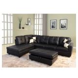 Black Faux Leather Left Chaise Sectional with Storage Ottoman(some superficial damage)