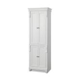 24 in. W x 73-3/4 in. H x 17 in. D, maximizing vertical space to provide ample storage 24 in. cabinet fits neatly in a variety of rooms Sturdy construction with solid wood, natural wood veneers and clean, low-emission engineered wood for durability 4 doors and three shelves provide access to abundant storage 2 upper shelves and one lower shelf offer customized organization Simple, classic design blends with a variety of decor styles Versatile white finish creates bright, stylish appearance Chrome hardware and concealed hinges offer a sleek, clean look Fully assembled for quick and easy installation