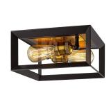 Home Decorators Collection Walden Forge 2-Light Black Frame Flush Mount Ceiling Light with Antique Brass Sockets