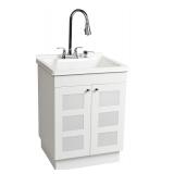 Vanity dimensions are 24.5 in. W x 18.75 in. D x 35.41 in. H Vanity Top predrilled for 4 in. center faucet (sold separately) Vanity assembled and ready to easily install