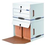 Drop front lid provides easy access to end tab patient files and medical records Designed for shelf storage, these sturdy units stack 2 high Center divider holds file folders upright for easy organization String & button closure keeps files securely stored Bankers Box Side-Tab(TM) Recycled End Tab Files with String and Button Closure. Basic Strength - For light-duty stacking and storing. Drop front lid provides easy access to end tab files.